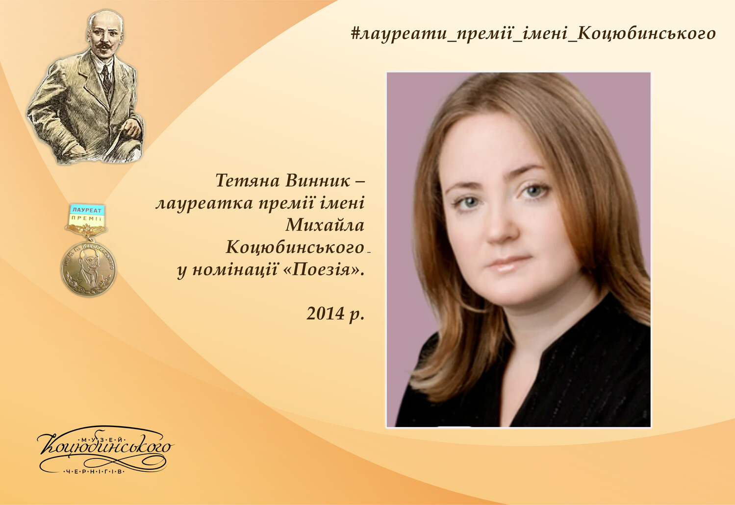 Випускниця Ніжинського державного університету імені Миколи Гоголя Тетяна Винник відома як письменниця і журналістка, перекладачка. Вона – авторка поетичних збірок «Золотоноша», «Гетсиманська молитва», «Самоспалення» та інших, романів, повістей, казок і п’єс для дітей, кіносценаріїв. Конкурси «Гранослав», «Коронація слова», «Смолоскип» принесли літераторці численні престижні всеукраїнські і міжнародні премії.