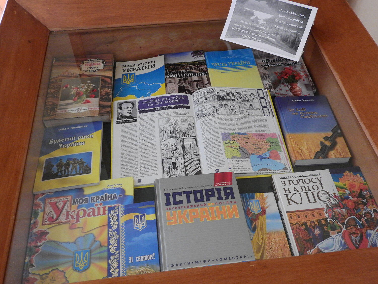 До Дня Соборності України в Чернігівському літературно-меморіальному музеї-заповіднику Михайла Коцюбинського представлено виставку бібліотечних матеріалів «Соборна Україна: єдина крізь віки». Експозиція розміщена у вітрині закладу та знайомить відвідувачів із добіркою книг відповідної тематики з наукової бібліотеки музею. На виставці представлені видання різних років, що висвітлюють історичний шлях українського державотворення, ідею національної єдності, боротьбу українського народу за незалежність та соборність.