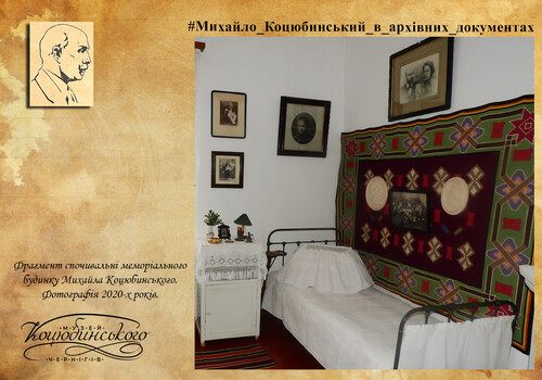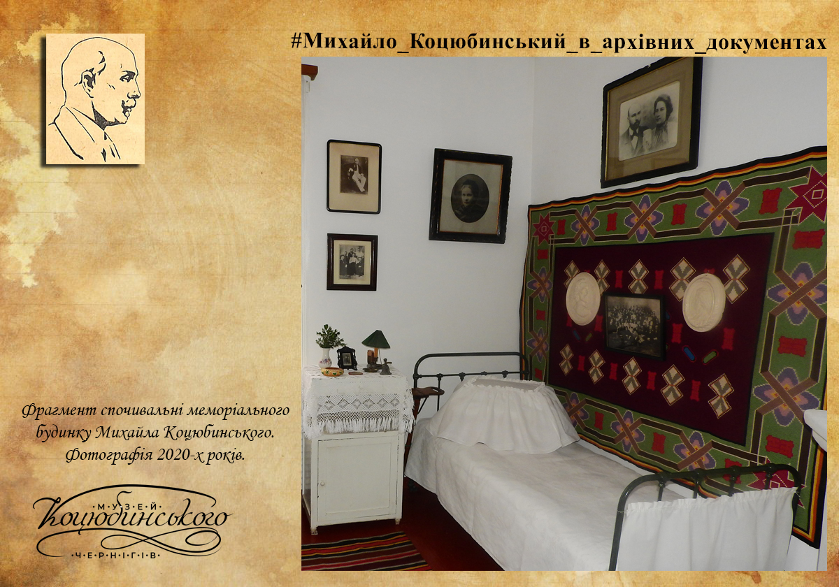 На прохання музею надіслати спогади про інтер’єр кабінету-спочивальні родини Коцюбинських відгукнулася дочка письменника Ірина Михайлівна Коцюбинська. Вона згадувала: «… у цьому будинку я народилася та прожила безвиїзно до 1919 року, а тому знаю до найменших подробиць всю обстановку кімнат будинку, як за життя батька, так і після його смерті. … у так званому кабінеті тата (перша невеличка кімната ліворуч від парадного входу) саме кабінет був тільки до 1905–1906 року.