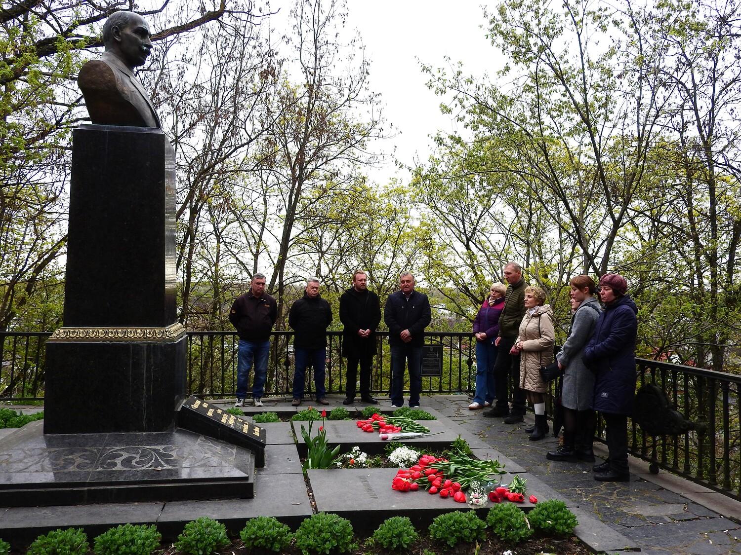 У ці квітневі дні минає 113 років від дня смерті відомого письменника. Задля вшанування пам’яті українського класика, сьогодні, 24 квітня, на його могилі на Болдиній горі відбулося урочисте покладання квітів. Аби сказати кілька теплих слів про Михайла Коцюбинського, на пам’ятному місці зібралися письменники-сучасники, місцева інтелігенція, поціновувачі творчості Великого Сонцепоклонника. Про неоціненний внесок Михайла Коцюбинського у розвиток української літератури та культури сьогодні згадали правнук письменника Ігор Коцюбинський, завідувач відділу наукових досліджень печер та пам’яток археології Національного архітектурно-історичного заповідника «Чернігів стародавній» Андрій Глухенький, директор літературно-меморіального музею-заповідника М.Коцюбинського Дмитро Мельниченко та поетеса Надія Галковська. До могили письменника та його вірної дружини на Болдиній горі поклали червоні тюльпани з меморіального саду Коцюбинського. Адже він так їх любив…